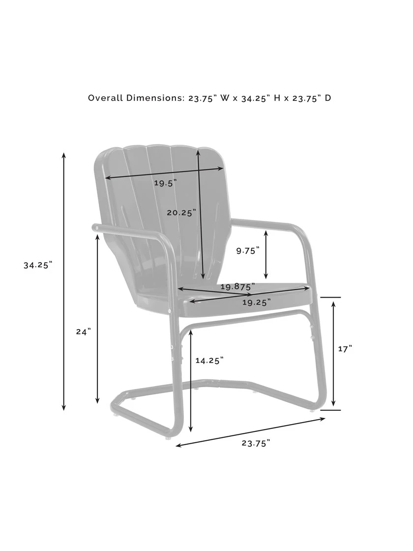 - Chairs – 19-1/4″ W x 19-7/8″ D x 34-1/4″ H