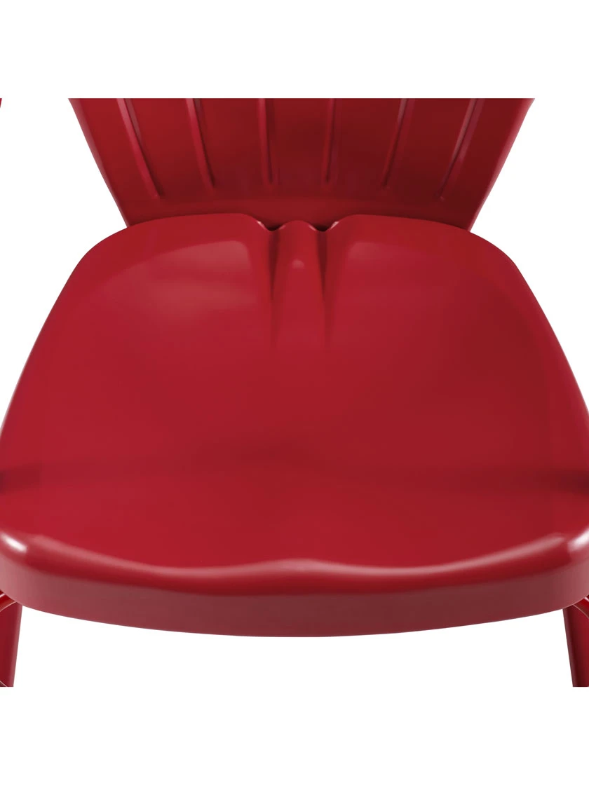 Inspired by the designs of yesteryear, the Ridgeland 5pc Dining Set brings class and charm to your outdoor space. Four vintage styled chairs in vibrant colors surround a simple metal dining table for a fun and functional outdoor dining experience. Each chair features a clamshell back with decorative grooves, plus a cantilever base that provides a relaxed seat for dining al fresco.