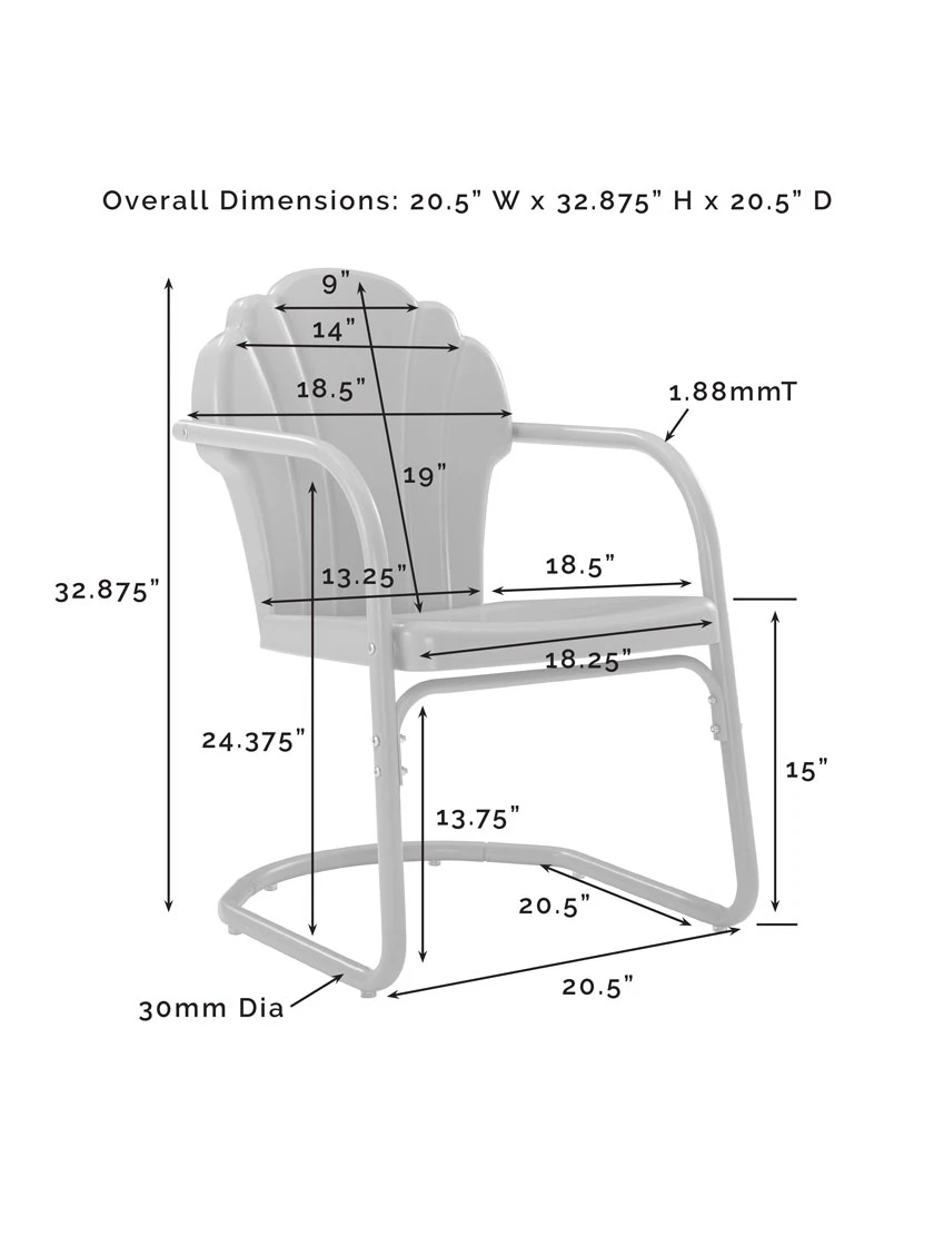 - Chairs – 18-1/4″ W x 18-1/2″ D x 32-7/8″ H