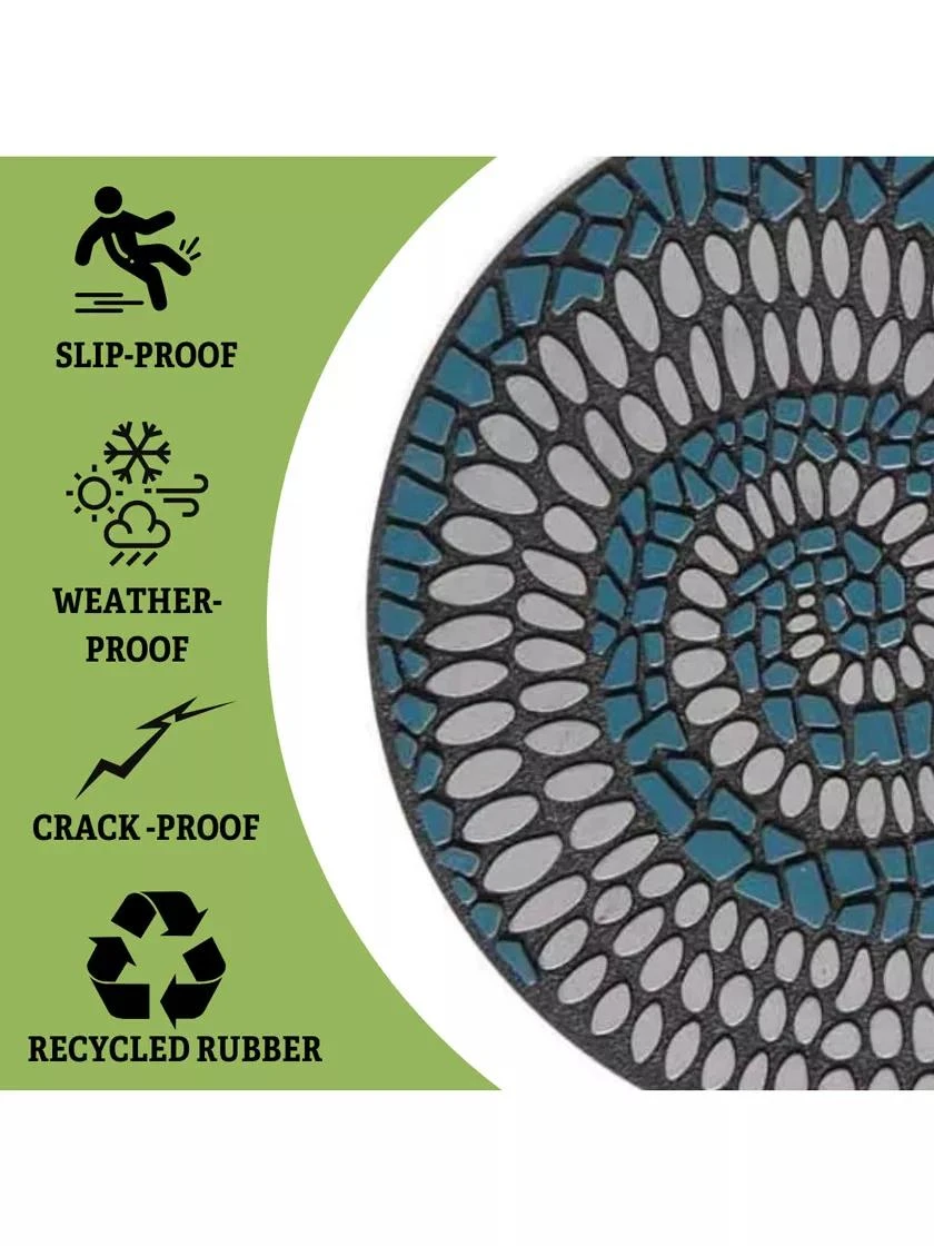 Installing a garden path has never been easier! Recycled rubber gives feet some cushioning, while the textured faux mosaic pattern prevents slips. Mark a safer path through grassy areas — or areas of the garden where visitors are welcome!